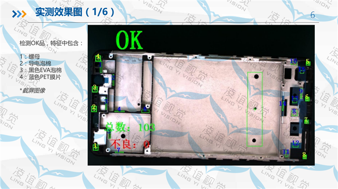 手機殼輔料檢測設備采用先進的視覺影像識別算法和架構(gòu),設備放置在流水線上實時在線檢測,精度高,識別效率高,帶聲光報警及自動剔除。可以識別手機殼件上的輔料漏裝,可識別黑色殼體上黑色泡棉的有無、零部件漏裝,倒裝,錯裝,堵孔等加工缺陷。能有效提高出貨品質(zhì)及減少客訴。應用于手機殼體加工、結(jié)構(gòu)組件、CNC加工、手機殼注塑、手機整機加工、電子產(chǎn)品加工行業(yè)等。